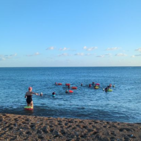 Having had a beautiful journey over the hills and spotting a number of roe deer and a bird of prey on the way, the crisp blue skies that greeted me in West Bay set against the beautiful Dorset Coastline provided a stunning backdrop for an incredible afternoon of swimming, stories and fun!