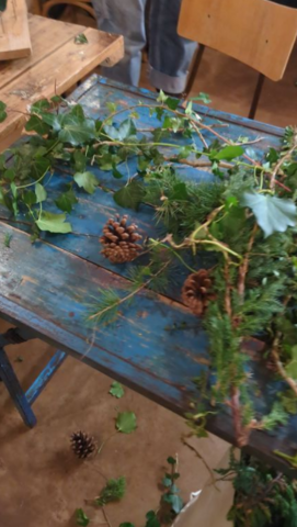 We talked about the meaning of wreaths across different cultures and traditions, as well as information and stories about the different foliage that had been collected and shared.